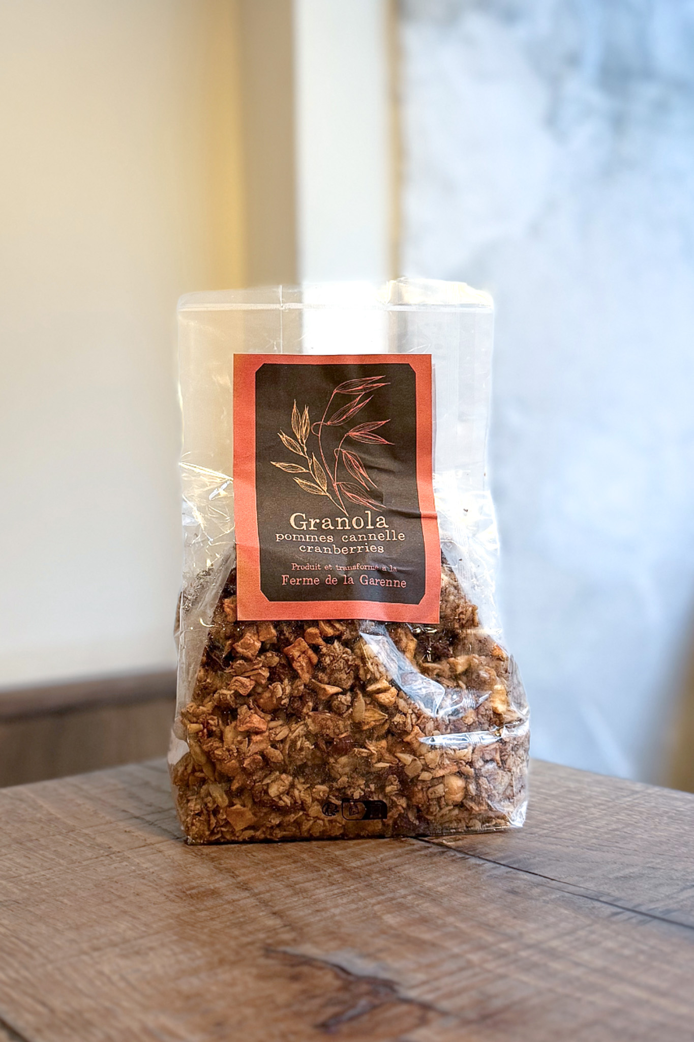 La ferme de la Garenne pratique l’agriculture biologique sur sols vivants et produisent des céréales de A à Z, du semis à la mise en sachet. Le miel et l’huile de tournesol inclut dans leurs recettes sont issus des ruches et champs de la ferme.