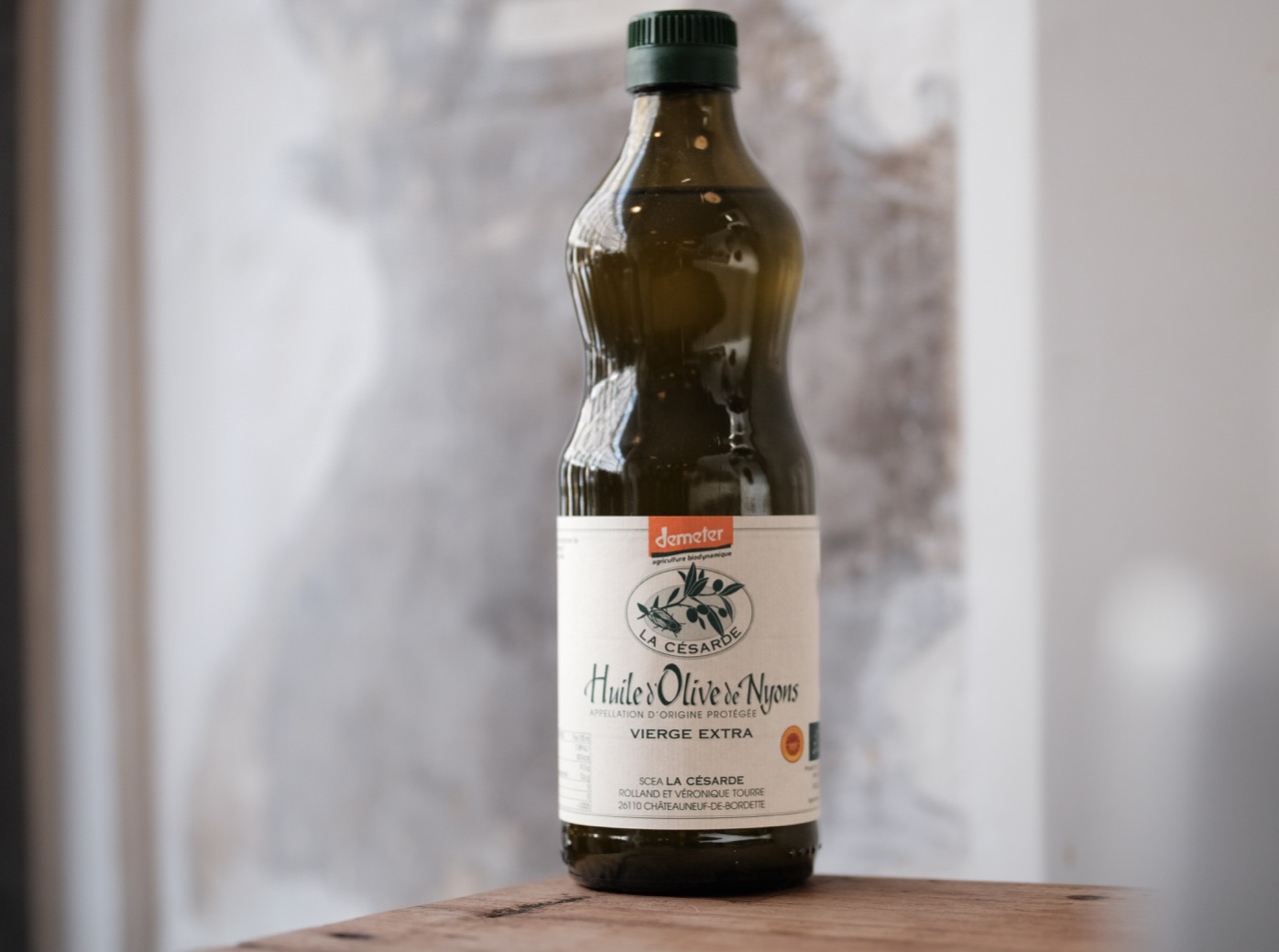 La Césarde est une ferme familiale, située en Drome provençale, dans un petit village de cent habitants, au cœur des collines des Baronnies. Rolland, amoureux du lieu depuis son enfance, s’y est installé en 1979 , au sortir de ses études agricoles. Véronique l’a rejoint en 1983. Et Joseph leur fils s’apprête à prendre la suite. Les vergers d’oliviers et d’abricotiers sont situés autour de la ferme, à flanc de colline. Les vergers d’oliviers de variété Tanche (variété de l’appellation Nyons) sont soit de vieux vergers d’arbres recépés après le gel de 1956, soit des plantations plus récentes faites à partir de « souquets », c’est-à-dire des rejetons qui poussent au pied de l’arbre. Le domaine a été converti à l’agriculture biologique en totalité en 1989, puis à l’agriculture biodynamique certifiée par Demeter en 2009.