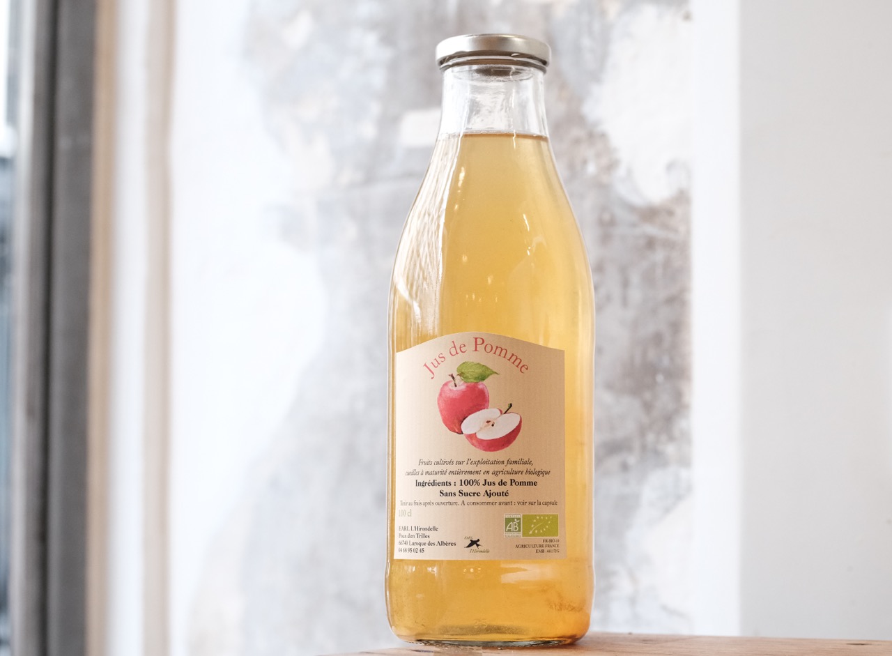Délicieux jus de pomme bio de la famille Cribeillet (66) issu de leurs vergers. Sans sucre ajouté bien entendu !