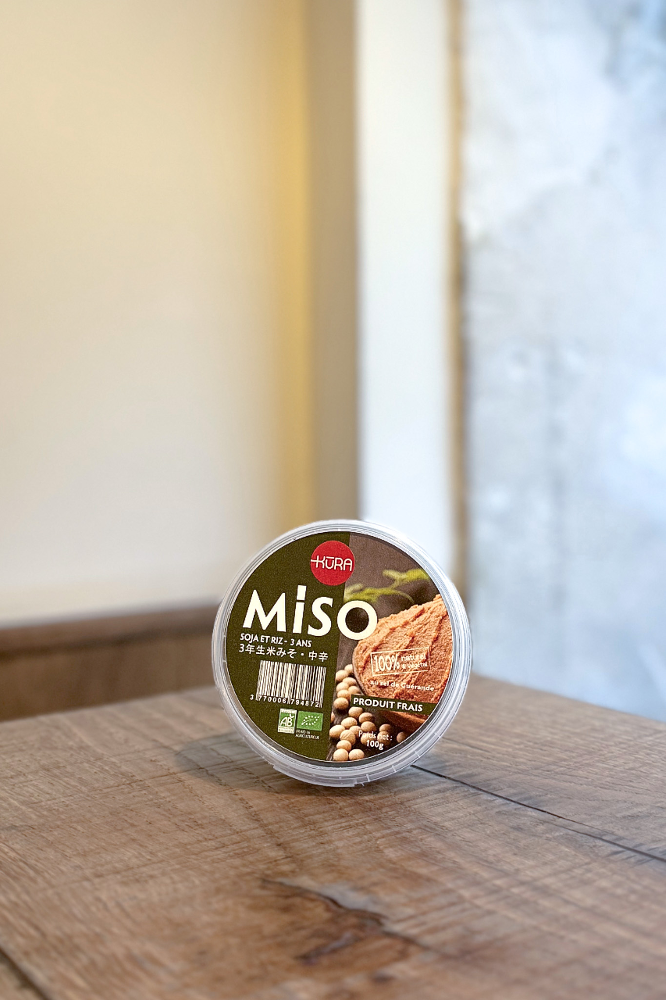 Miso brun bio de 12 mois vieilli sur 3 années entières. On y trouve des saveurs plus rondes et profondes, ainsi qu’une couleur plus foncée. S’utilise comme le miso moyen dans les soupes, sauces et marinades. Fabriqué à partir de matières premières bio et françaises !