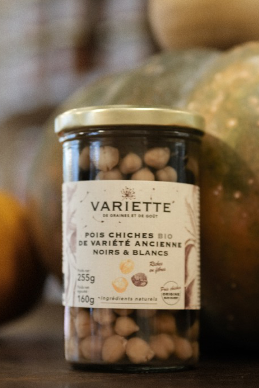 Pois chiches bio de variété ancienne noirs & blancs au naturel, cuits et prêts à consommer !