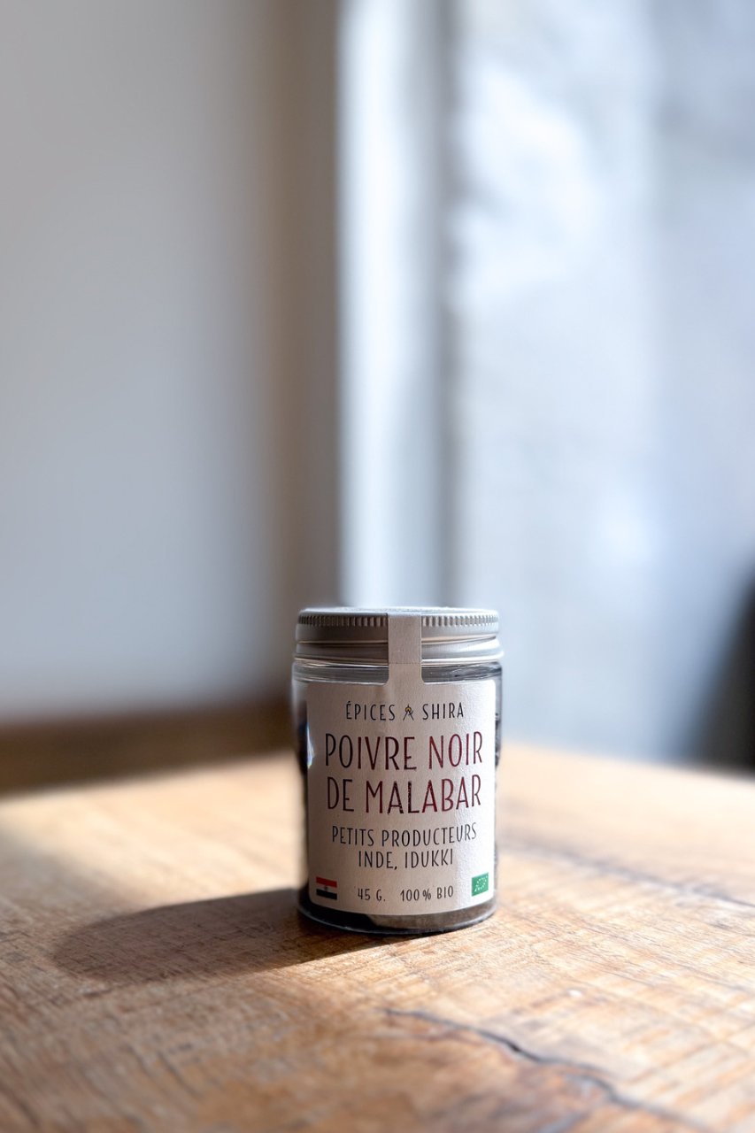 Poivre noir bio de Malabar originaire du Kerala au parfum doux et camphré, il développe des notes de cannelle et une fraîcheur délicate. Peu piquant, parfaitement équilibré, c’est un poivre polyvalent à avoir toujours sous la main.