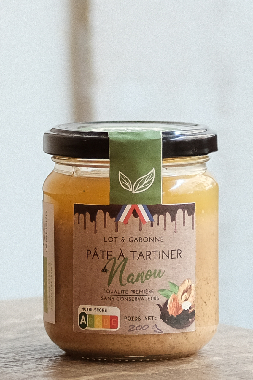 Une pâte à tartiner gourmande réalisée avec les noisettes bio de la ferme des 3 soleils et du cacao !