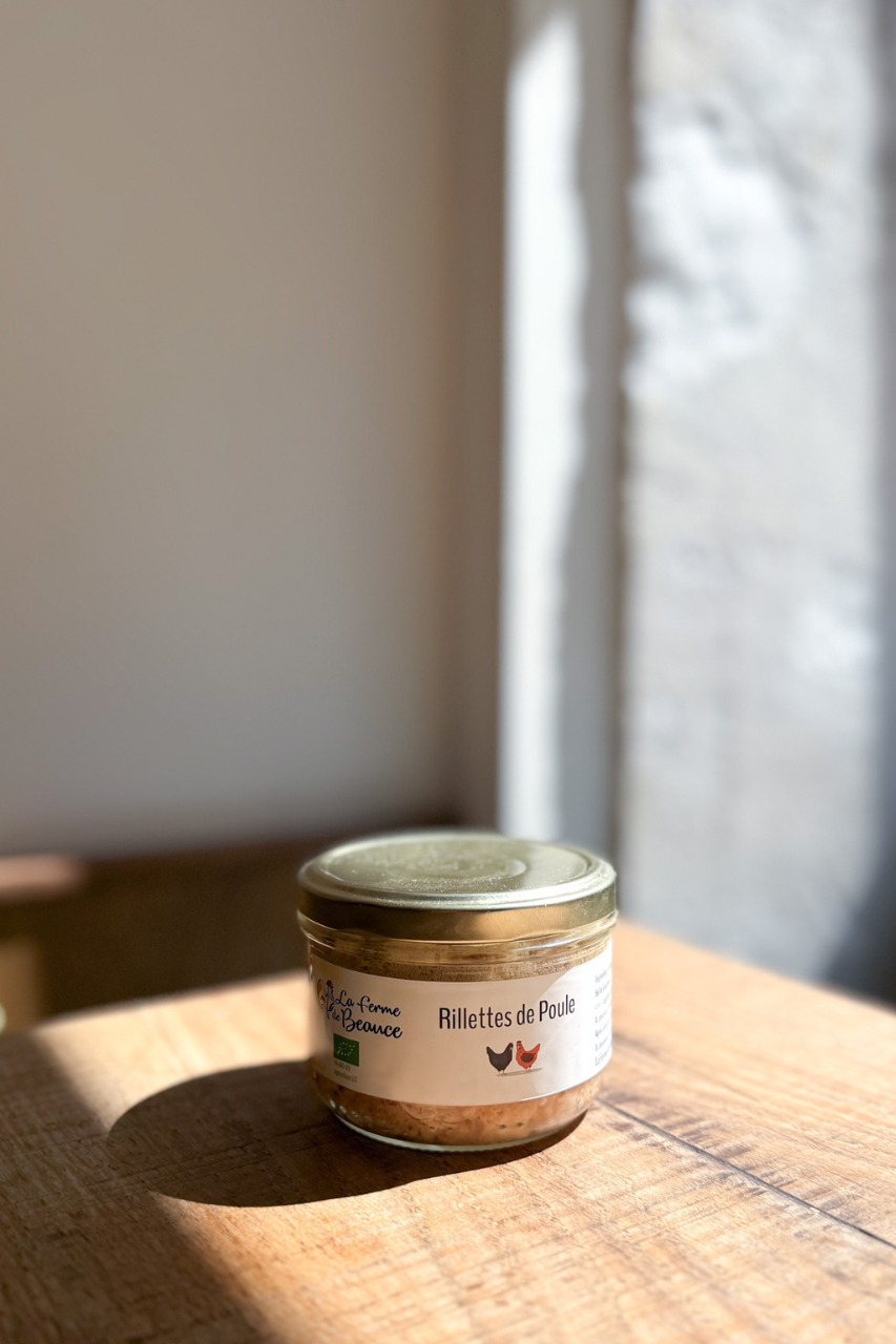 Délicieuses rillettes de volaille Cou Nu de la ferme de Beauce. Sans additif.