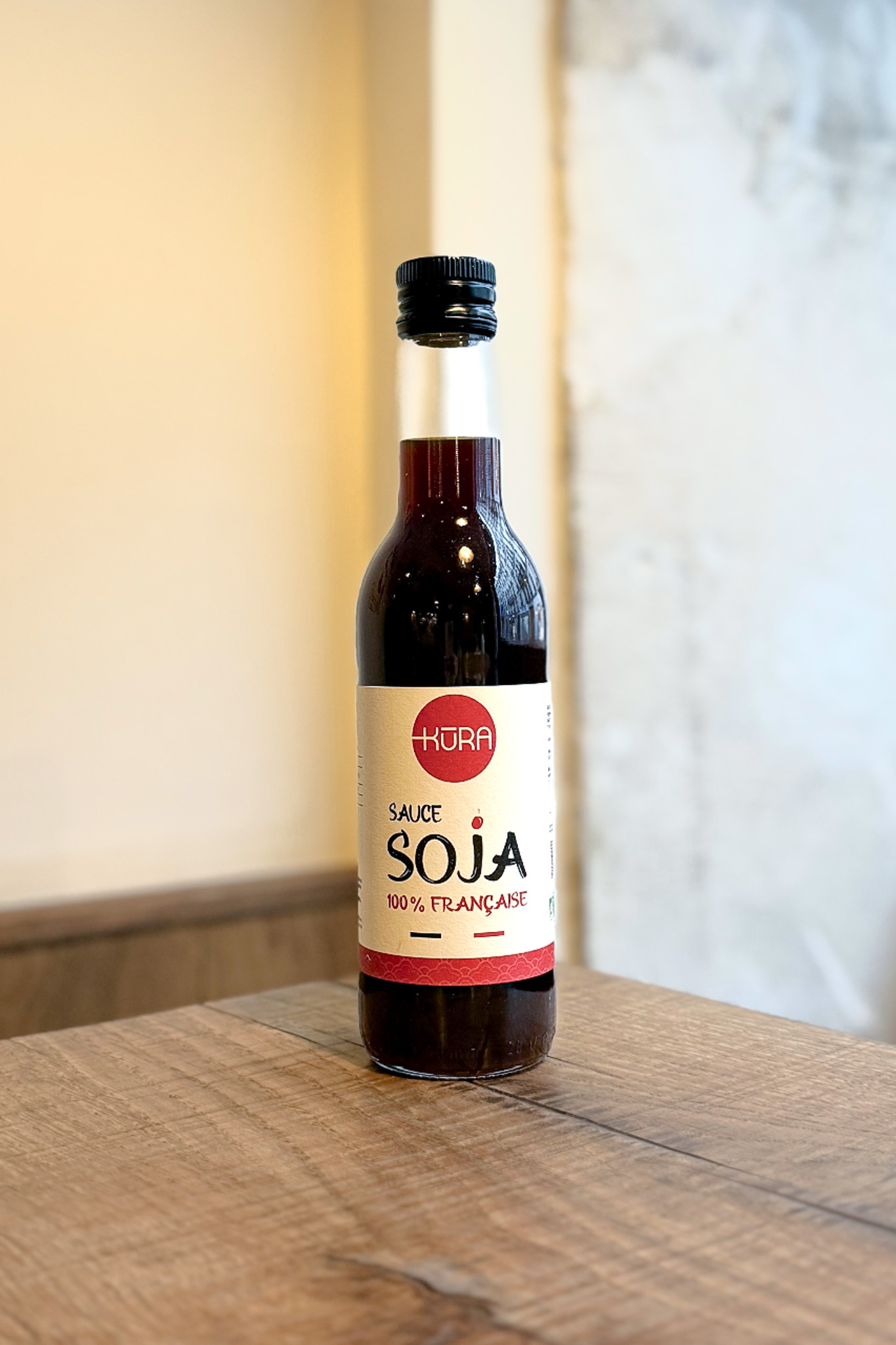 Sauce soja salée française issue d’une fermentation de plusieurs mois et fabriquée selon les méthodes traditionnelles japonaises avec du soja et du blé bio cultivés en France.