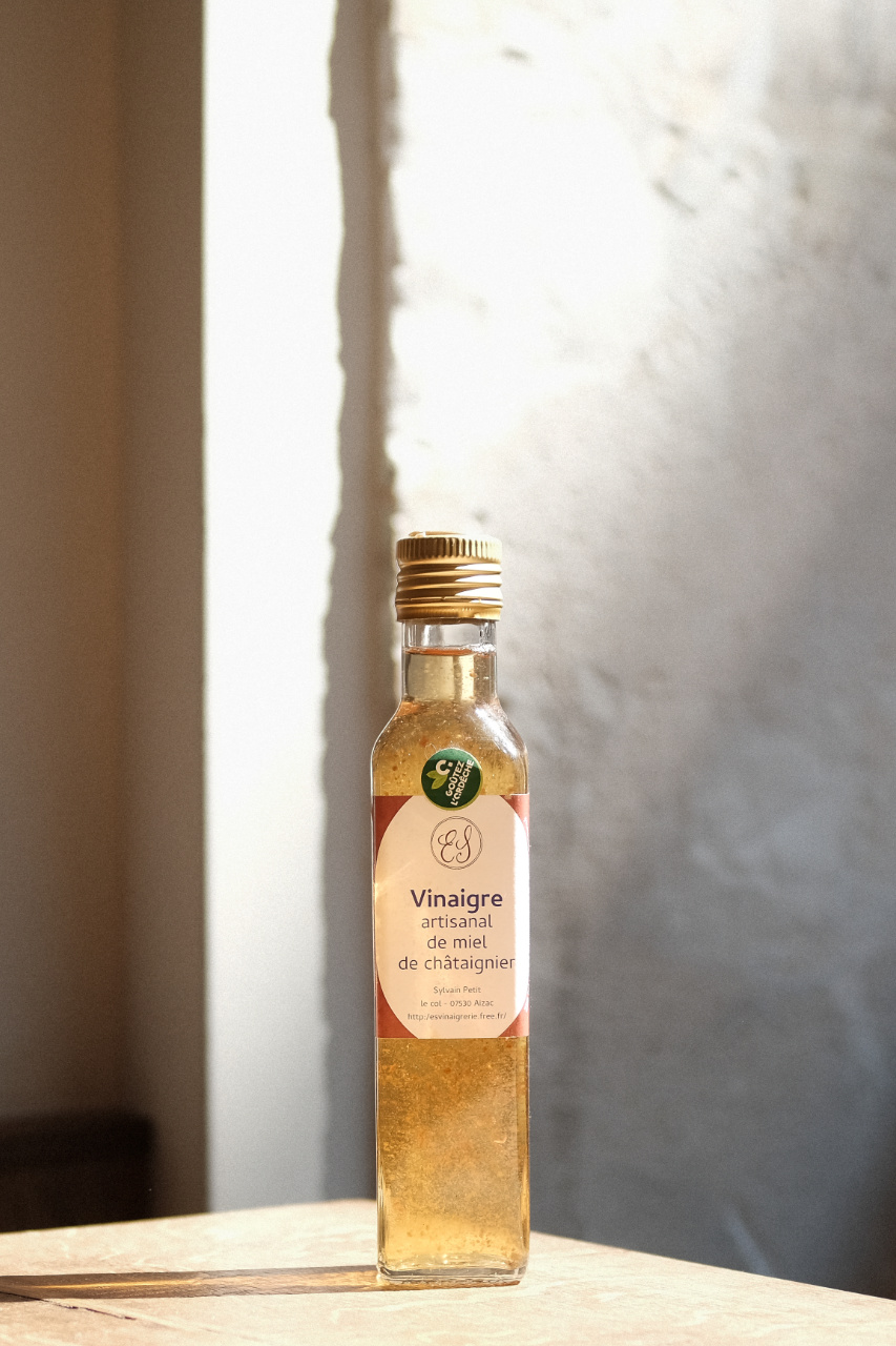 Un vinaigre authentique et naturel, produit à partir de miel de châtaigner ardéchois, par Sylvain Petit (07).