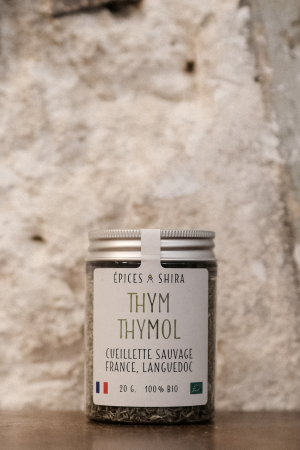 Le grand classique Thym Thymol, issu de cueillette sauvage dans le Languedoc.